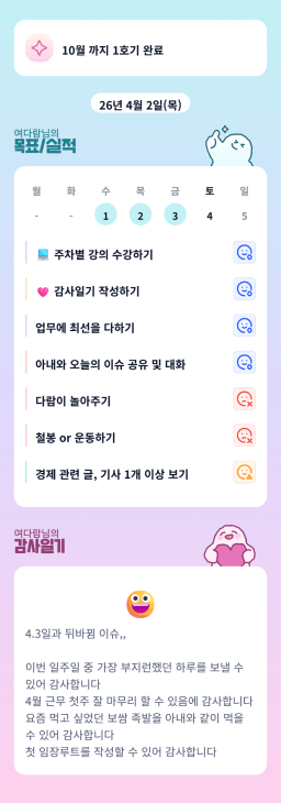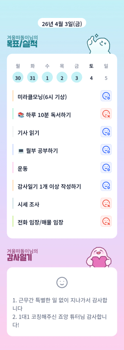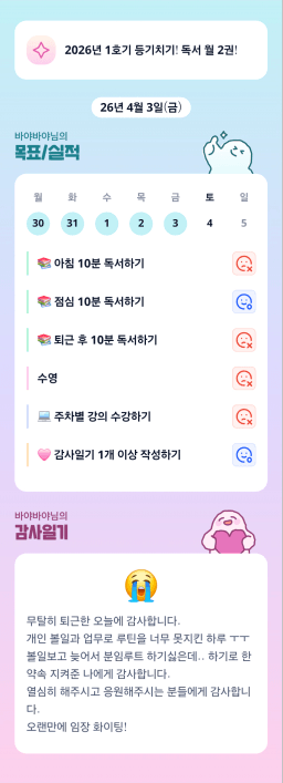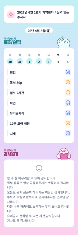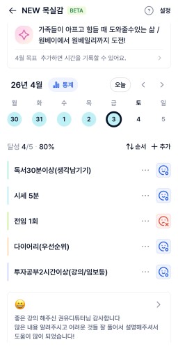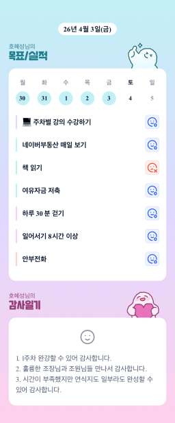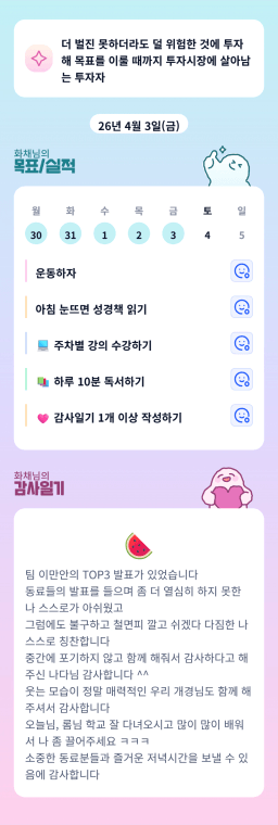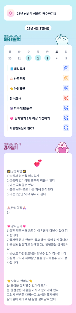 [행복한금붕이] 매일목실감 (20260403) D+344
