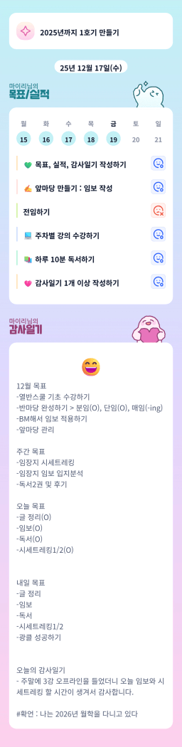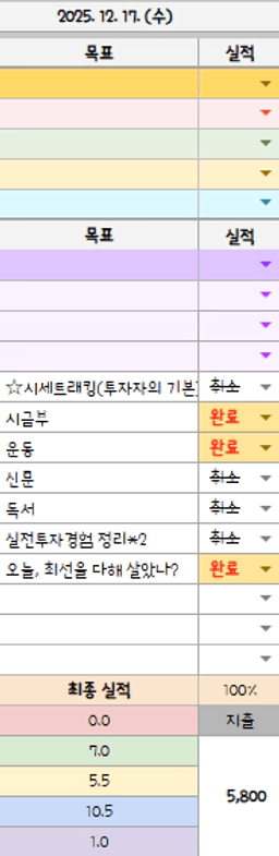 [나무해 월벗] #1327. 25.12.17 목표/실적