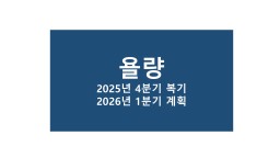 [욜량] 25년 4분기 복기 & 26년 1분기 계획
