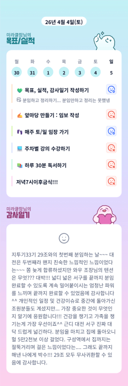 [미라클맘] 목실감 누적 119일, 연속 98일 진행중