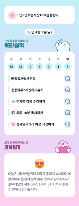 [모두행복해져라] 목실감 누적 274일, 연속 29일 진행중