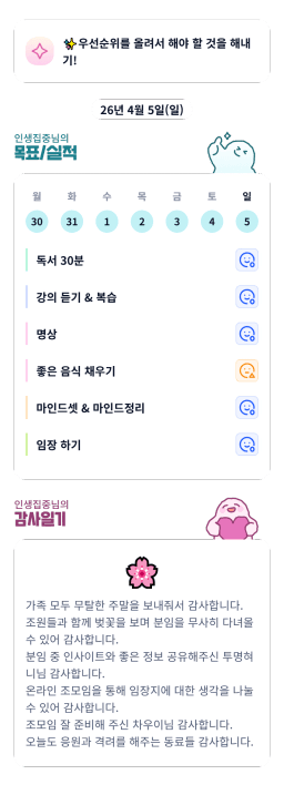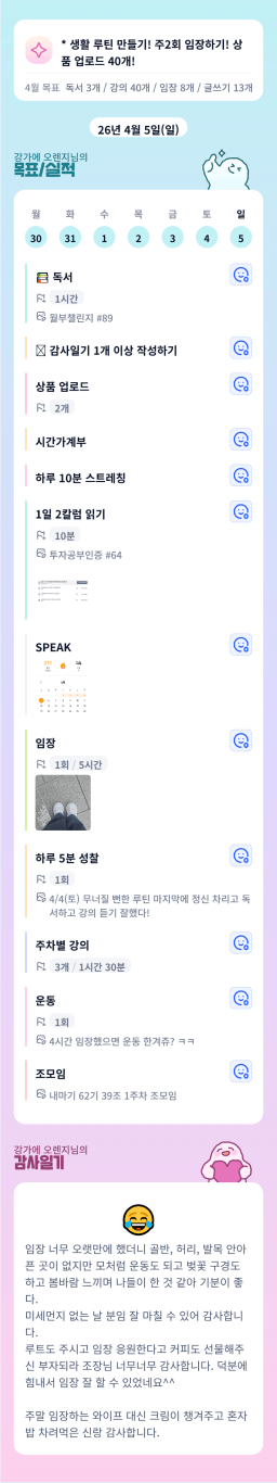 [백만채봉] 4월 5일 목실감 누적 84일, 연속 84일 진행중
