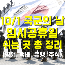 10월 1일 국군의날 임시공휴일 정상영업 여부는? (택배, 병원, 우체국, 주식, 은행, 학교)
