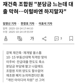 [그린쑤] 경제신문요약(10월) #25_재건축 조합원, 분담금 급증과 대출 규제로 사업 중단 위기(25.10.25)