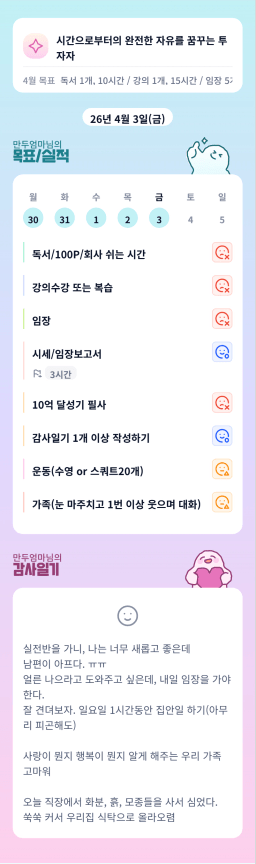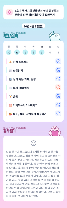 [내 꿈은 부자할머니] 목실감 누적 130일, 연속 34일 진행중