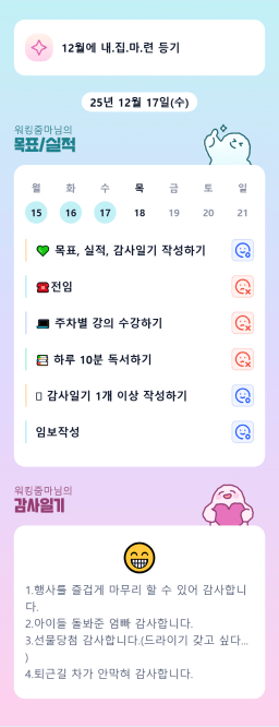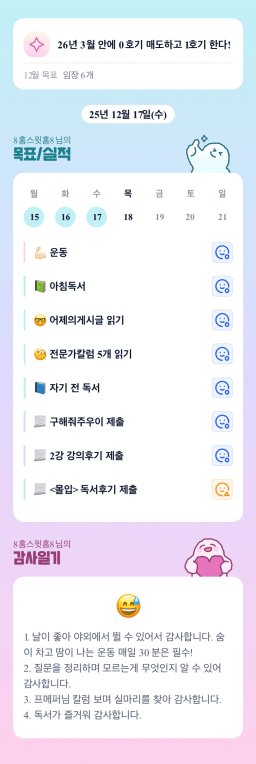 8홈스윗홈8] 25.12.17.(수) 매일목실감 90일인증 (49/90)