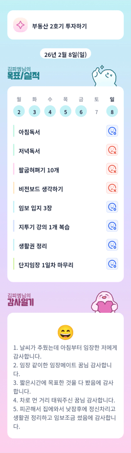 [실전 34기 인디록으로 자산 13배 흐름 만들조 홍드림] 2/8실적 및 2/9목표, 2월1주차KPT, 감사일기