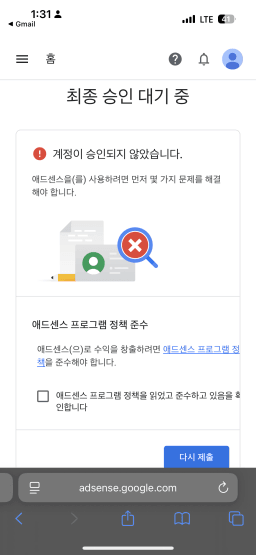 원프 - 주제바꿔서 다시 승인신청을 넣었는데 또 가치없는 콘텐츠라 결과가 나왔어요