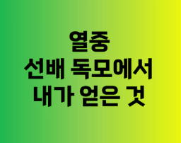 열중 선배 독모에서 내가 얻은 것 [육육이]