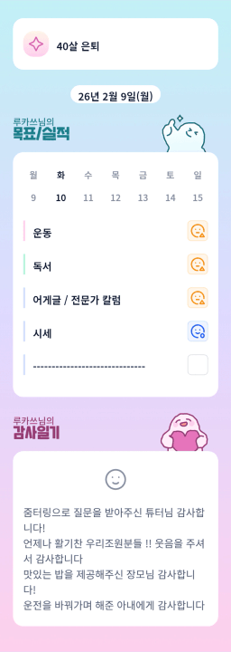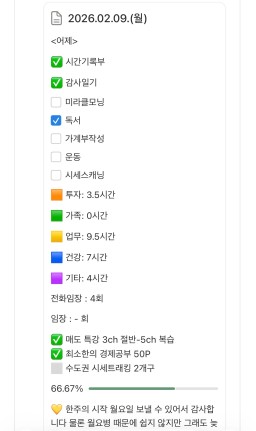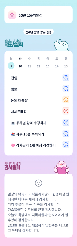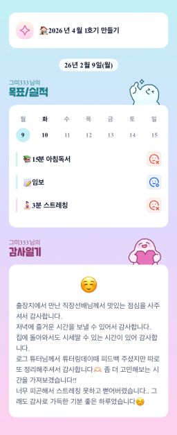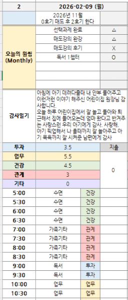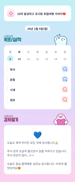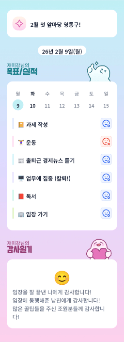 [정의] 2026년 2월 10일 목표, 실적, 감사일기