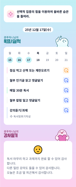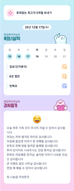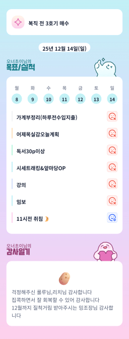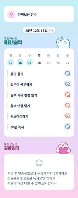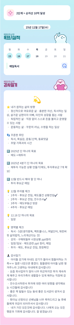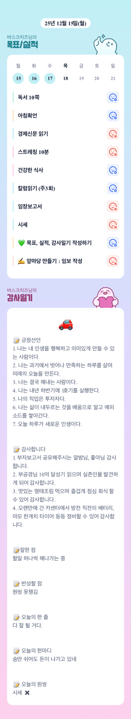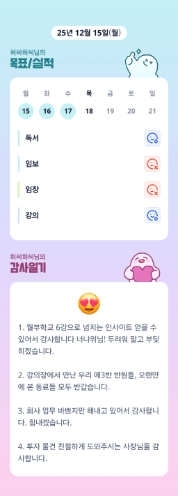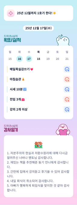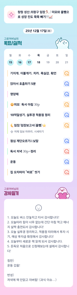 [러버블리v] 25.12.17 목표, 12.16 감사일기 + 칭반