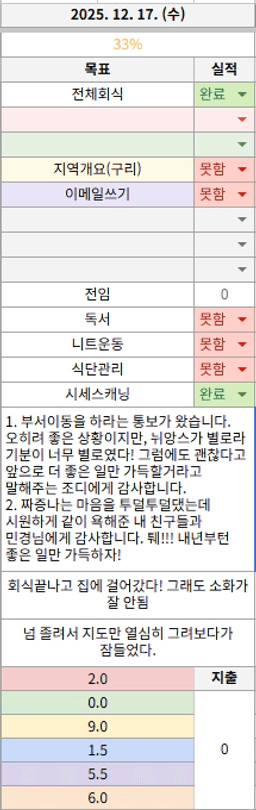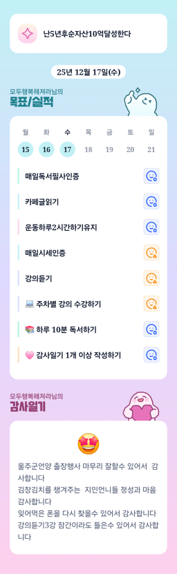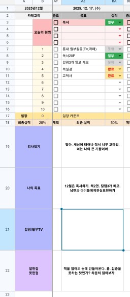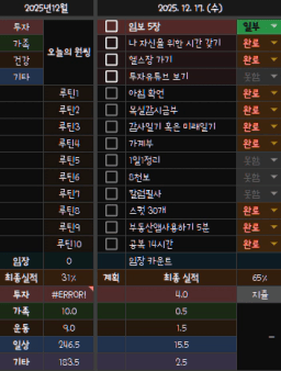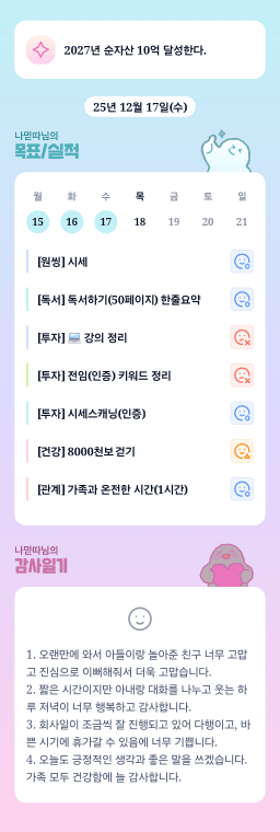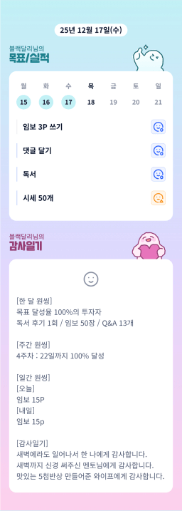 [정의] 2025년 12월 18일 목표, 실적, 감사일기