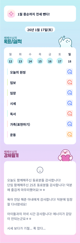 [지투실 27기 미요미우 튜터님과 2심전심 S2 해내는오소리] 0116-0117 목실감