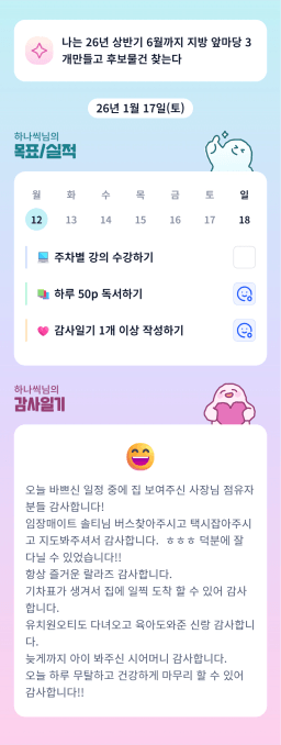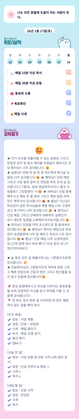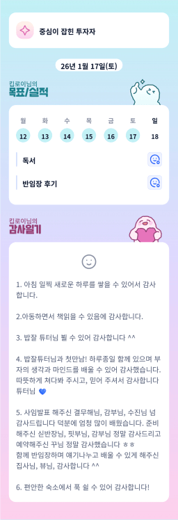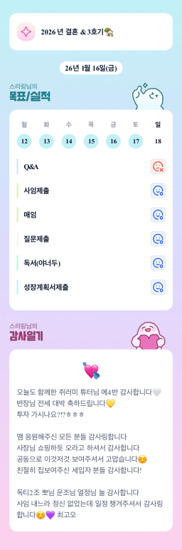 [지투실27기거봐룰루랄라튜터링받고그집4길잘했지_하나씩]매일목실감26.01.17