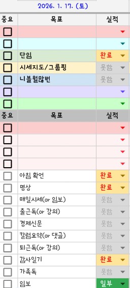 [나무해 월벗] #1358. 26.01.17 목표/실적
