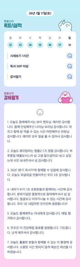 [나무해 월벗] #1358. 26.01.17 감사일기