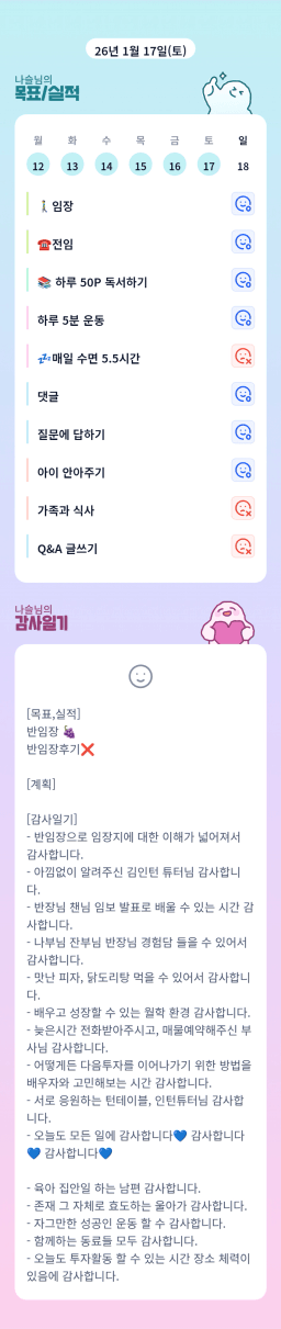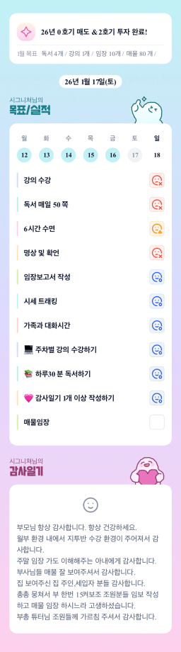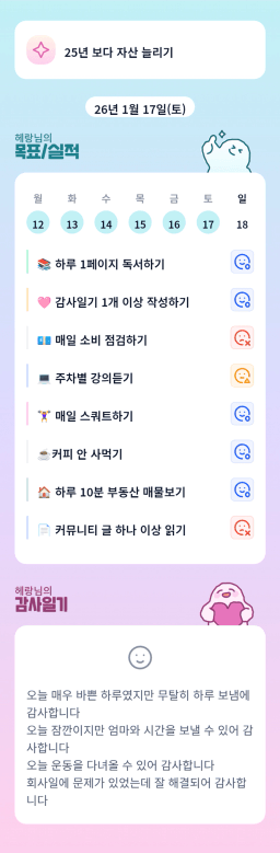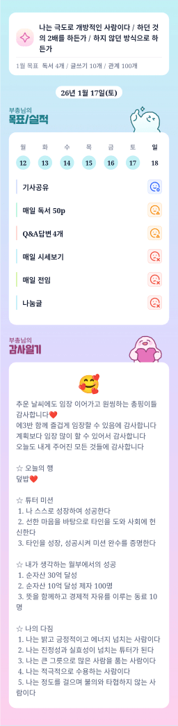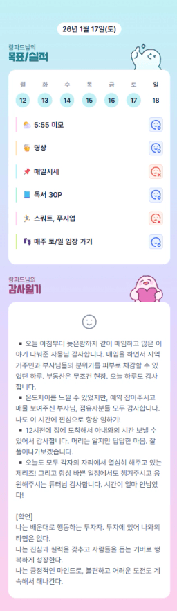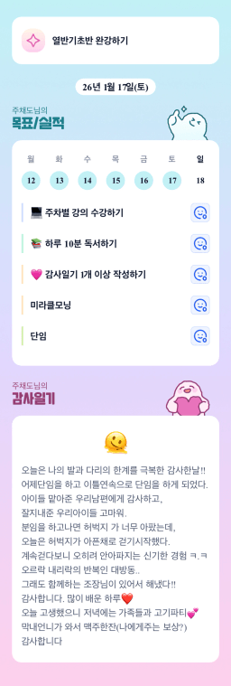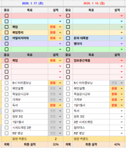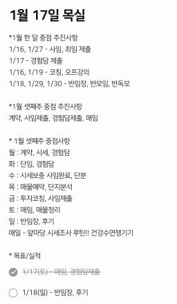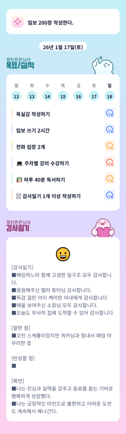 1/17 목표, 실적, 감사일기, 시간가계부 [주시부]