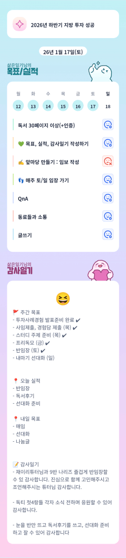 [지투실 27기 제이(J)든 피(P)든 볶든 튀기든 성공할 5조_리치샘킴] 목실감(1.16~1.17)