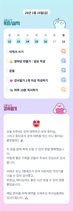 [지투실전 27기 쑤튜님과함께 🌱쑤욱쑤욱 성장하는 2린0ㅣ들 주니유니맘2]260117토