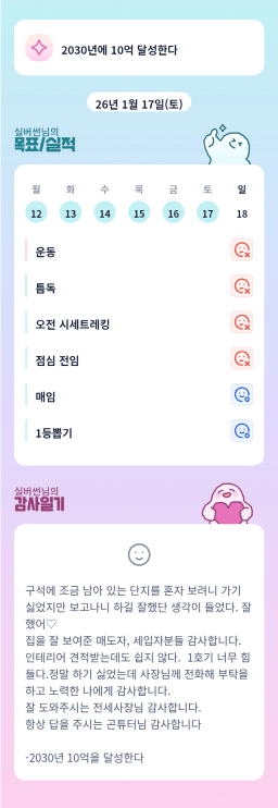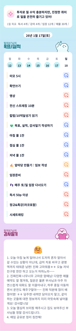 [실준 72기 한겨울에 8팔하게 임장해서 10억 달성할조 발찌천사] 260116 금 목실감