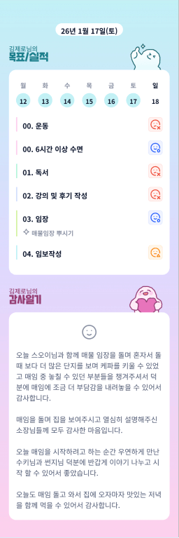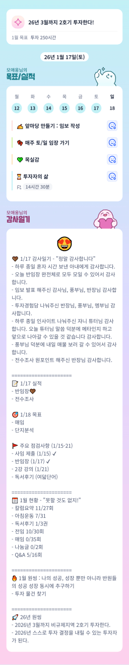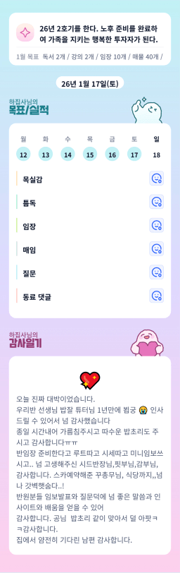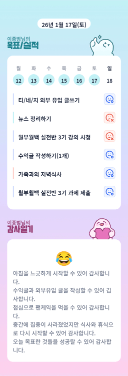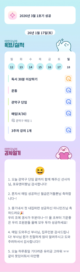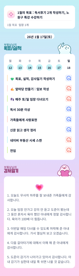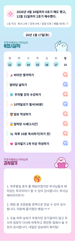 [행복한금붕이] 매일목실감 (20260117) D+267