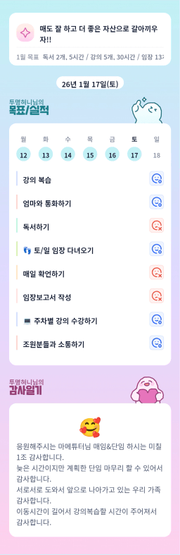 [지투기 32기 지방에서 돈벌어 63빌딩 세우조 - 예은찬아빠] 26년 1월 17일