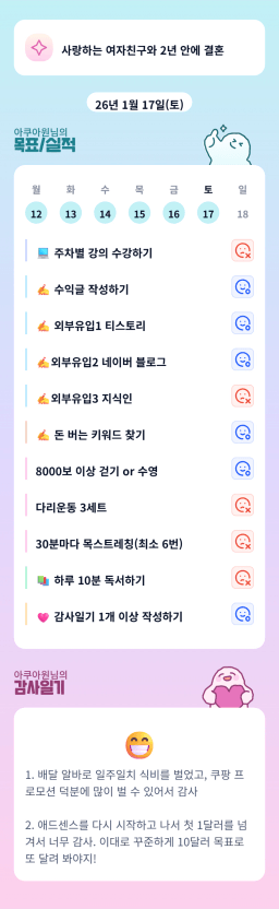 [아쿠아원] 월부챌린지 10회 진행중 : 1월 10일차 #10 매일 목실감 74일차 완료
