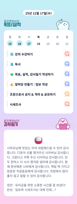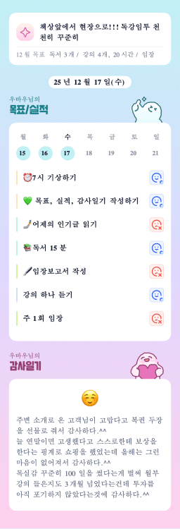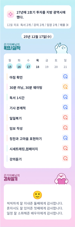 12/17 목표, 실적, 감사일기 [주시부]