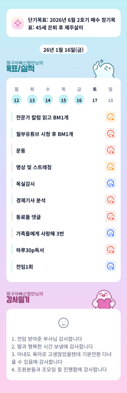 1/16 목표, 실적, 감사일기, 시간가계부 [주시부]