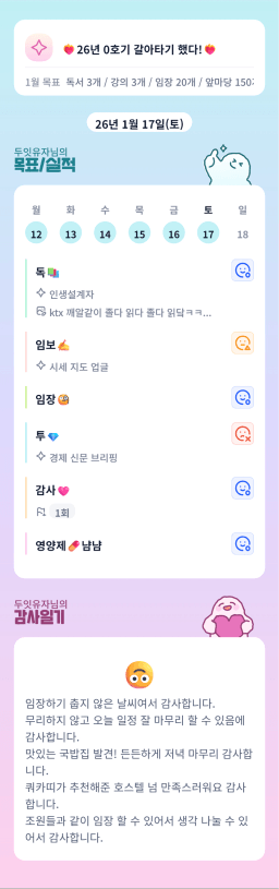 [성장함🧡] (2026.1.17.) DAY325 목표,실적,감사일기,시간가계부