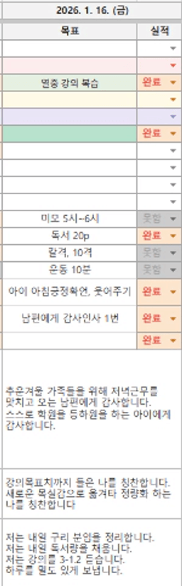 [나무해 월벗] #1357. 26.01.16 목표/실적