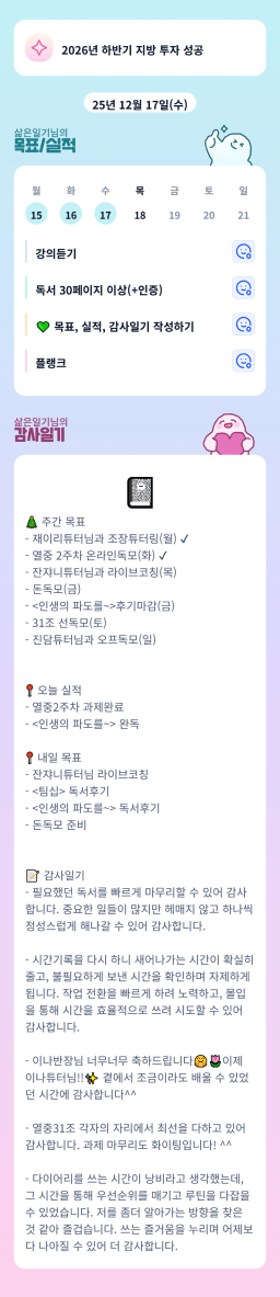 [열중31조/독서TF4Q 삶은일기] 12월 17일 목실감