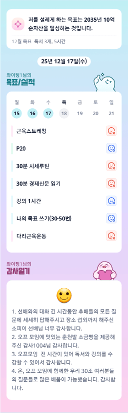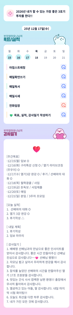 [열기89기 자산4모아3십억 달성하조 소소행복] 12/17 목실감