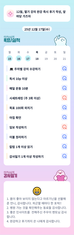 [열기 89기 6개월만에 1년치 결과내조 이키] 12월 17일 목실감