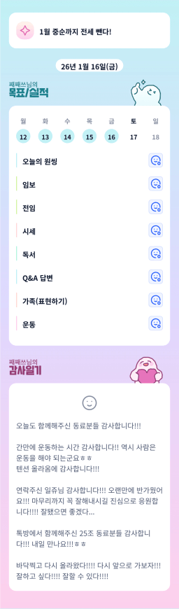 [짱이사랑맘] 1/16 목실감칭반시계부