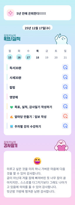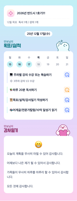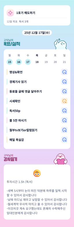 [열기89기 투자원칙대로 chilly(72)하게 안정적으로 투자하조_만보] 25.12.17 목실감