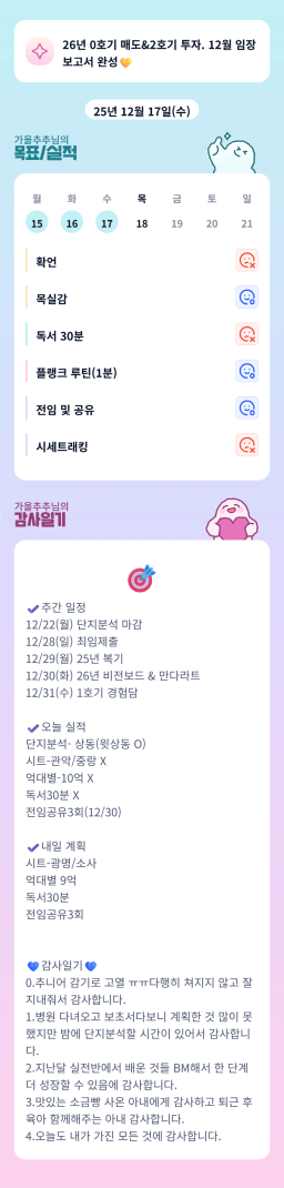 [월부학교 7ㅏ을엔 Fall in LOVE용맘 여유로운리치] 2025.12.16 ~ 12.17 감사일기