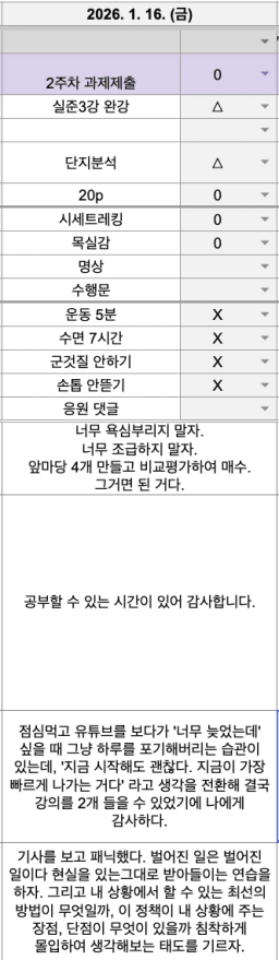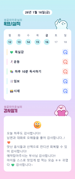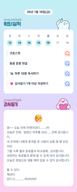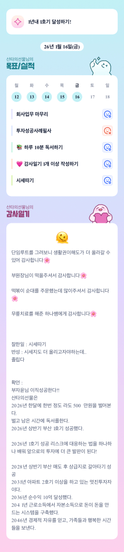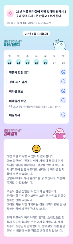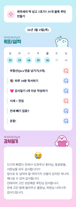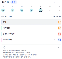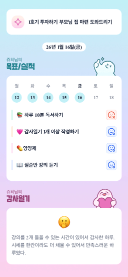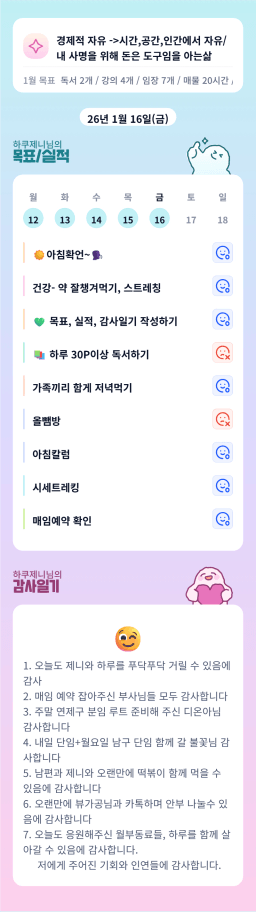 [지투실전 27기 쑤튜님과함께 🌱쑤욱쑤욱 성장하는 2린0ㅣ들/독서TF3조 럭셔리초이] 매일목실감 26.01.15-16