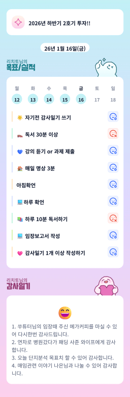 [지투실전 27기 쑤튜님과함께 🌱쑤욱쑤욱 성장하는 2린0ㅣ들 리치토]26.01.16. 목실감
