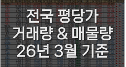 [빙바나나] 전국 시세 26년 3월 평당가 / 거래량 & 매매,전세 매물량 (26.03.10)