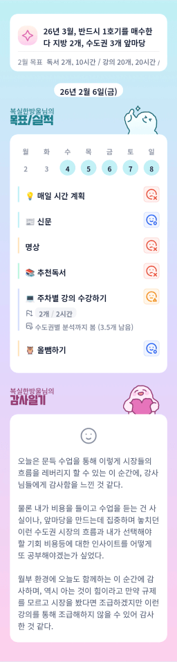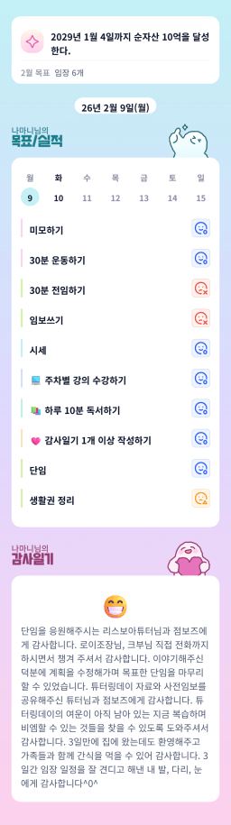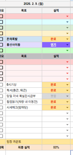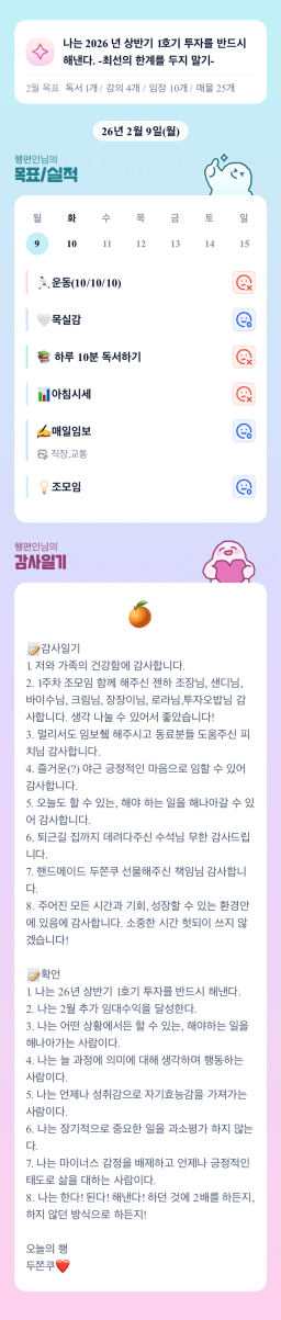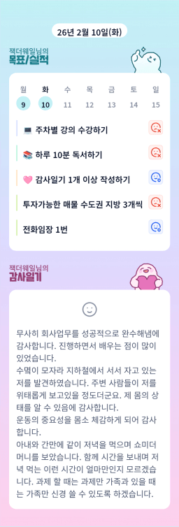 26년 2/10 목표,실적,감사일기,시간가계부[헤라클래스]
