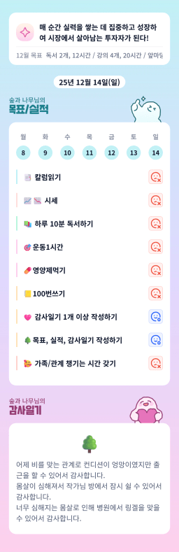 [열기89기 열심히 4고팔아 6십전에 은퇴하조_숲과 나무] [90일 습관 만들기_숲과 나무] 12/14 #75. 목실감