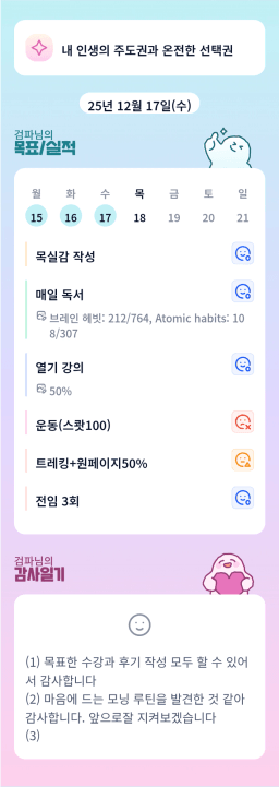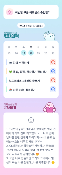 [열기89기 열심히 4고팔아 6십전에 은퇴하조_숲과 나무] [90일 습관 만들기_숲과 나무] 12/17 #78. 목실감