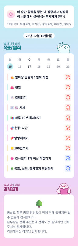 [열기89기 열심히 4고팔아 6십전에 은퇴하조_숲과 나무] [90일 습관 만들기_숲과 나무] 12/15 #76. 목실감