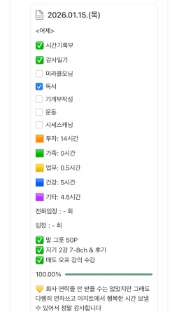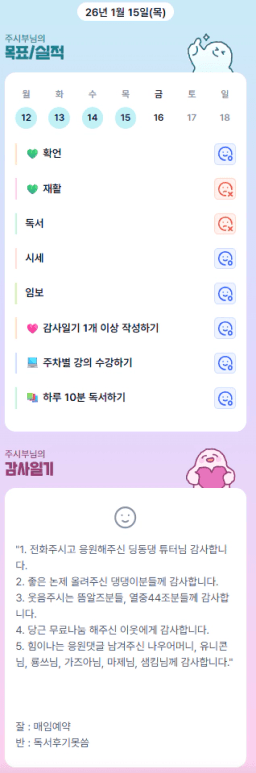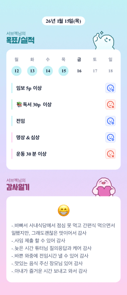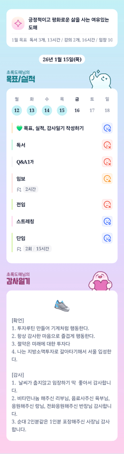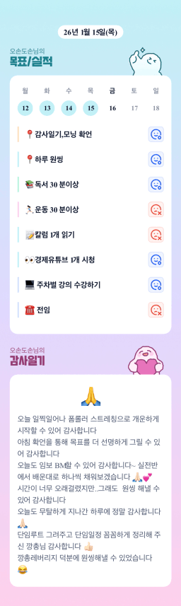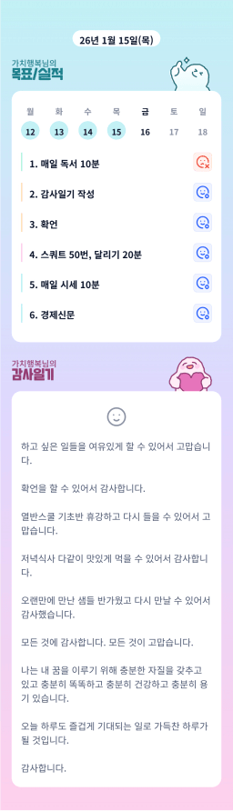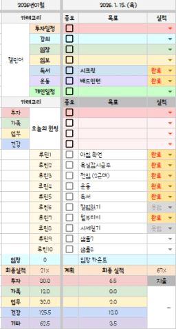 1/15 목표, 실적, 감사일기, 시간가계부 [주시부]