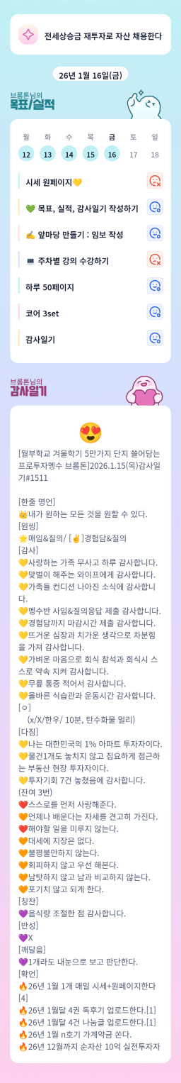 [월부학교 겨울학기 5만가지 단지 쓸어담는 프로투자멩수 브롬톤]2026.1.15(목)감사일기#1511