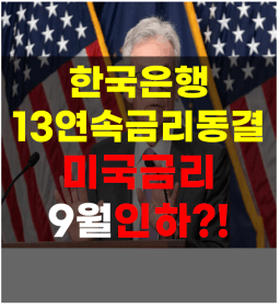 한국은행 13연속 금리동결!! 9월 미국금리 인하?! (+ FOMC, 연준, 빅컷, 금리전망)