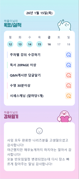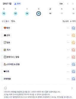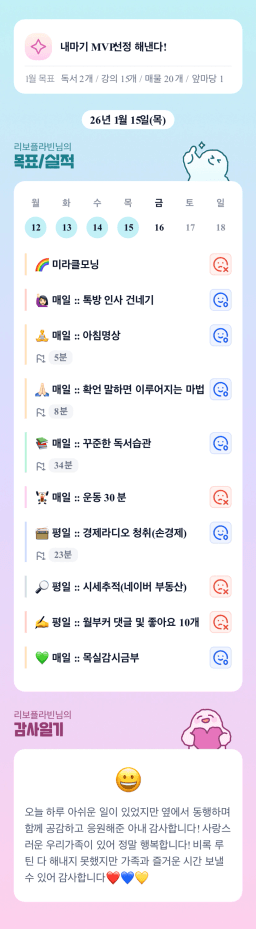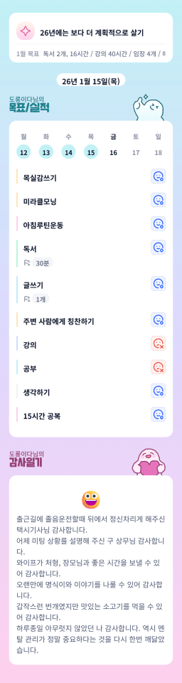 26년 1/16 목표,실적,감사일기,시간가계부[헤라클래스]