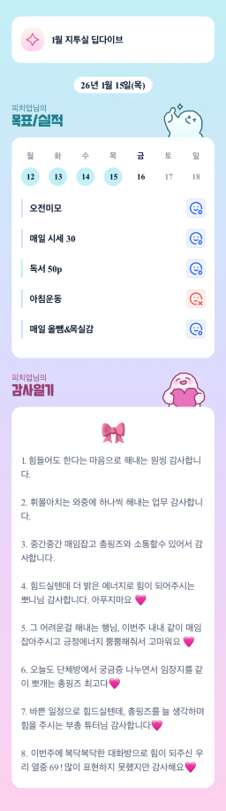 [지투실 27기 총총 뭉쳐서 부 한번 15켜보조 피치업] 매일목실감 1/15