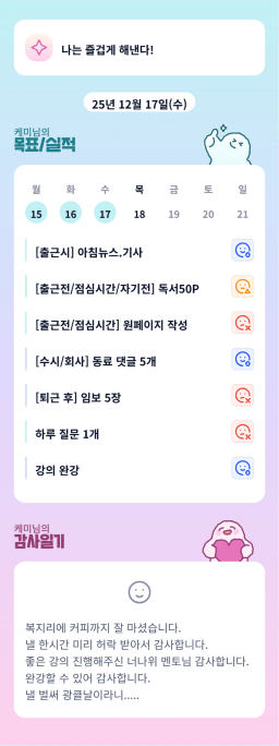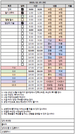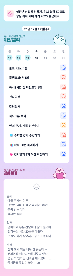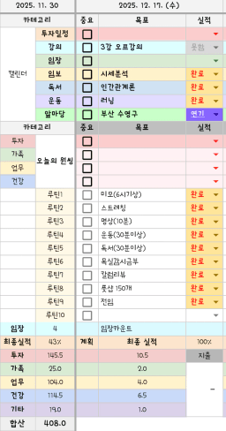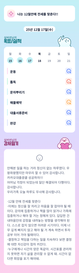 12/17 목표,실적,감사일기,시간가계부 [김실력]